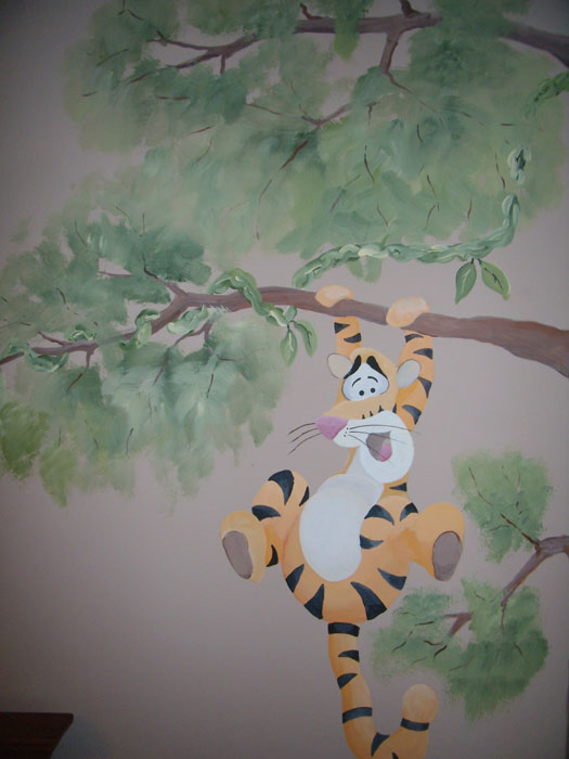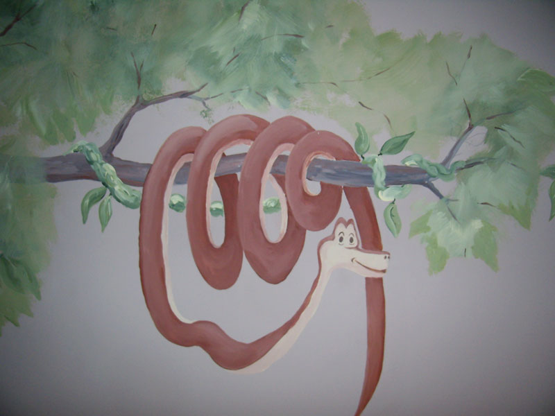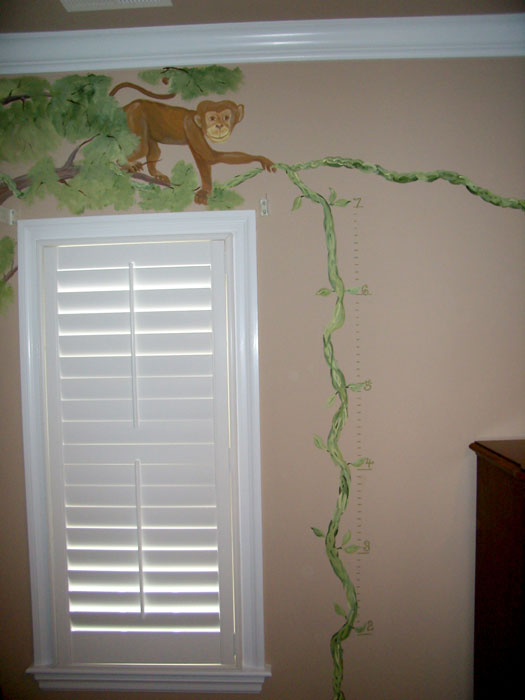 Logan's favorite characters from "The Jungle Book" watch over him while a monkey holds a vine that serves as a growth chart.