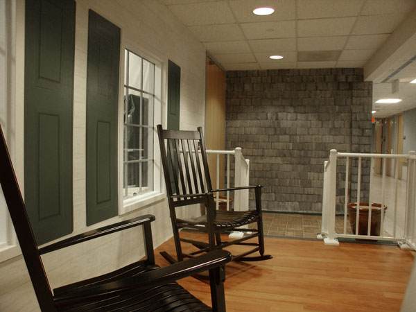 CK Paints used faux finishing and trompe L'oeil techniques for the wood siding, shutters and the cedar shake.
