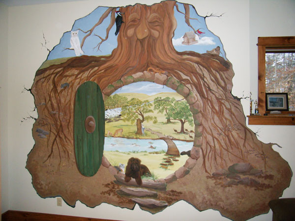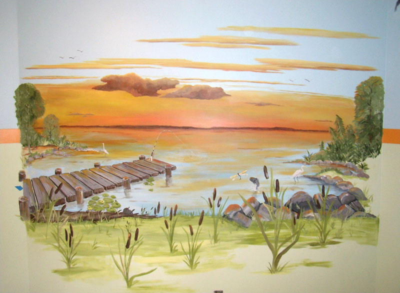This 7' x 5' wall mural is in a lake front home where the residents love to boat, fish, and watch the sunset over their pier.