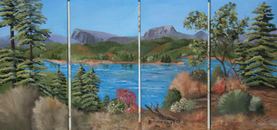 Four 15"x36" canvas panels depict the view from this familiy's living room.